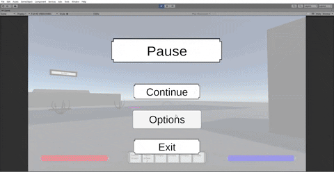 Alongside swapping in sprites, we also got two new additions to the UI itself. The start screen was added with buttons that work akin to the pause menu. The options transitions settings from one to another using the Global Volume to store settings as it doesn't disappear between scenes, though in hindsight that should've saved the settings in a self made setting storage I could call Player Preferences so messing with one global volume through the two scenes wouldn't be necessary.