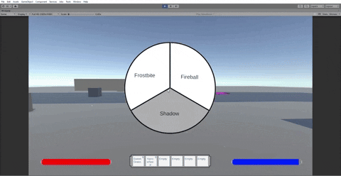 Not shown here, but spells currently work on a delegate system where once the spell selection menu is added, the script will switch which spell is currently in use and stats like mana used/cast time based on the function currently stored in the delegate.