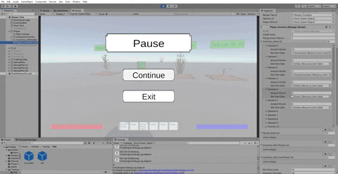 A re-occurring theme with this sprint as "I" and "Ctrl" were set to do something similar for an inventory menu and spell choosing menu. We don't have the menus themselves, but the cubes served to showcase the buttons worked for their intended purpose. There was of course more to them than just turning on and off a game object active, they were both given with the ability to pause the game when turned on. It also does a quick check if the player paused only or opened a menu then paused so that the game doesn't un-pause when one is closed but the other is still open.