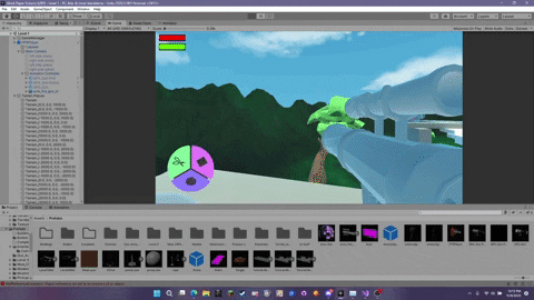 The stamina bar meanwhile doesn't have much to note. It's a different script and bar, but the contents of the script are almost identical to the hp script. This is because by instead inserting the max player stamina and the current player stamina (instead of hp) you can get results that work perfectly for tracking a player's stamina. In hindsight however, I probably could have combined the two scripts and made a single empty game object to hold that script. On the other hand, its current form instead gives easier access to whichever script I need specifically in case one needs to be changed or breaks.